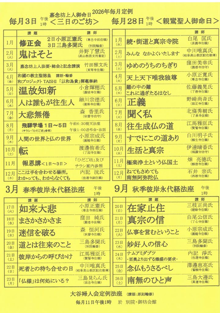 2026年の定例法話予定 ※クリックすると大きくなります